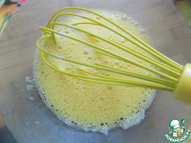 Взбить яйцо (у меня 2 маленьких)на небольшой скорости миксера или вручную 2-3-мин.