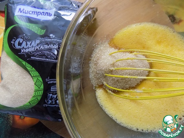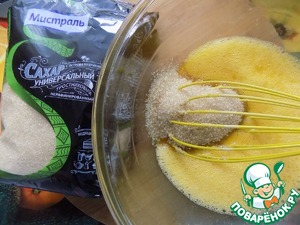 Добавить сахар, соль и 1/2 стол. ложки ванильного сахара и взбивать еще минуту. Я использую коричневый сахар ТМ''Мистраль''он придает капкейкам дополнительный карамельный аромат.