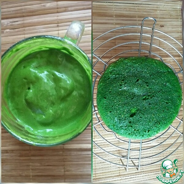 Мох готовим как обычный бисквит. Взбить яйца с мёдом и сахаром до пышности и объеденить с сухими составными. Выпекать в духовке 15 мин при 170°С, в мультиварке 10-15 мин в режиме Десерт, либо в микроволновке 2-3 мин на мощности 800-900 (если вы уверенны в своей микроволновке). Я выпекала в мультиварке. Мох должен получиться очень нежным и воздушным.