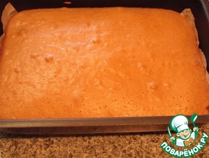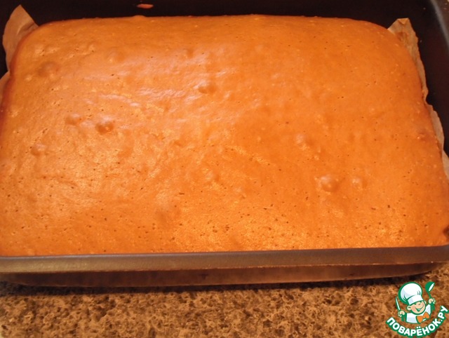 Вынимаем готовый корж из духовки. Слегка охлаждаем (что бы можно было взять рукой),