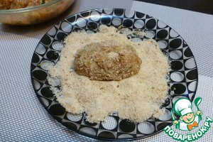 Мокрыми руками формируем котлеты, панирум в сухарях.