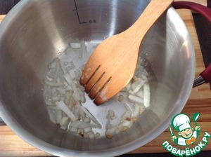 • В кастрюле разогреть масло, добавить лук и жарить 5 минут.