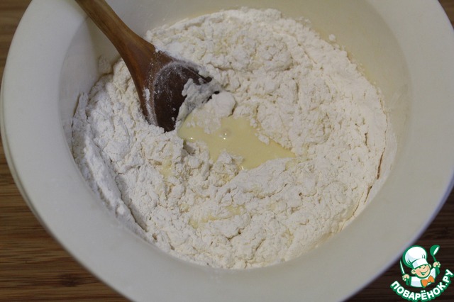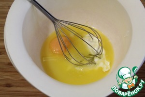 Масло, сметану, соль, сахар, яйцо тщательно перемешать.