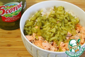 Огурчики натереть на крупной терке, отжать сок и добавить к рыбе.
