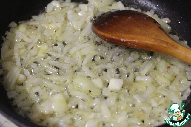 Обжарить лук на сливочном масле.