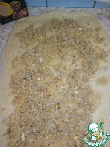 Тесто вместе с начинкой свернуть в рулет. Это нужно делать аккуратно. Как можно туже, чтобы "начинка" не убежала.