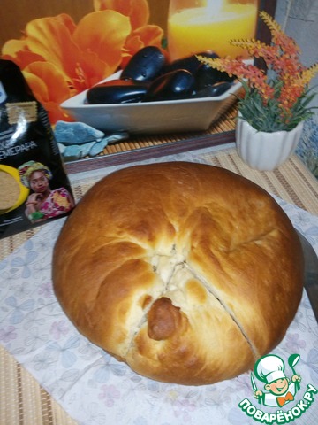Перед выпечкой смазать яичным желтком или молоком для корочки. Я не смазываю, а просто, когда пирог уже почти готов, включаю верхний нагрев. -