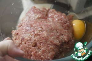 Фарш посолить, поперчить, добавить паприку и хорошо вымесить. Добавить яйцо и снова вымесить массу.