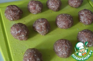 Сформировать фрикадельку, тщательно пряча сыр в серединку. Так поступить со всем фаршем.