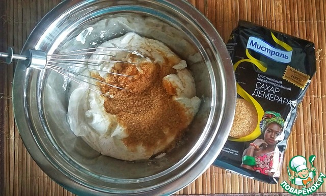 Сметану взбить с коричневым сахаром Демерара ТМ Мистраль.