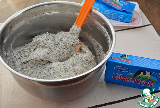 Взбить мягкое сливочное масло ТМ "Экомилк" с сахаром, затем поочередно добавить яйца, взбивать минуты 3-5 до воздушности, затем добавить творог, цедру, 2 ст. ложки сока лимона, перемешать, добавить муку, перемешать, в конце добавить мак, перемешать.