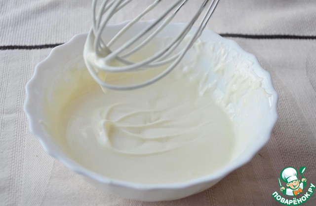 Для глазури: сметану смешать с молоком сгущенным, добавить 2-3 ст. ложки лимонного сока и ещё взбить. После добавления сока глазурь должна загустеть. Сметану я использовала 15% жирности, жирнее будет ещё лучше)