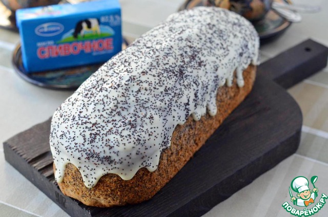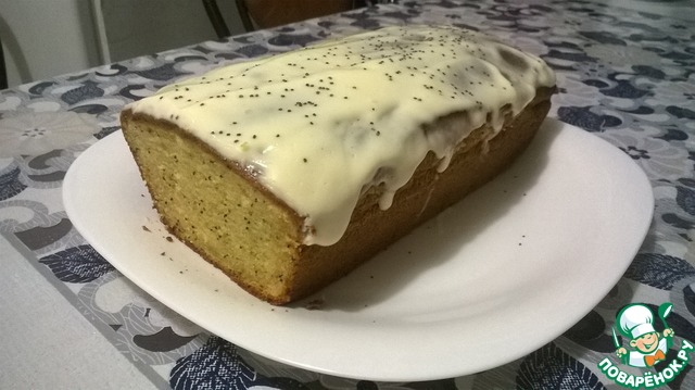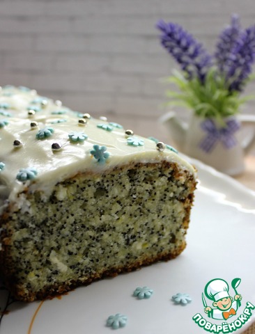 Остывший кекс покрыть глазурью, посыпать маком (не обязательно) или просто посыпать сахарной пудрой.