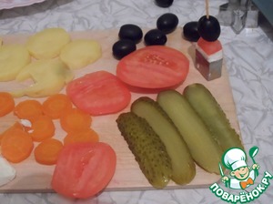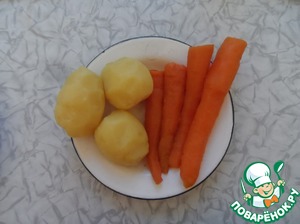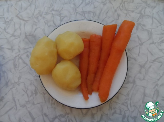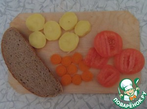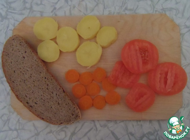 Овощи очистить и нарезать ломтиками толщиной ок 0.7 см