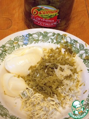 В чашу положить плавленый сыр, натертые на мелкой терке яйцо, чеснок и маринованные огурчики ТМ "6 соток". Хорошенько перемешать до однородной массы.