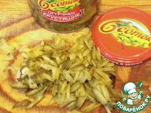 Маринованные огурчики ТМ "6 соток" нарезать соломкой.