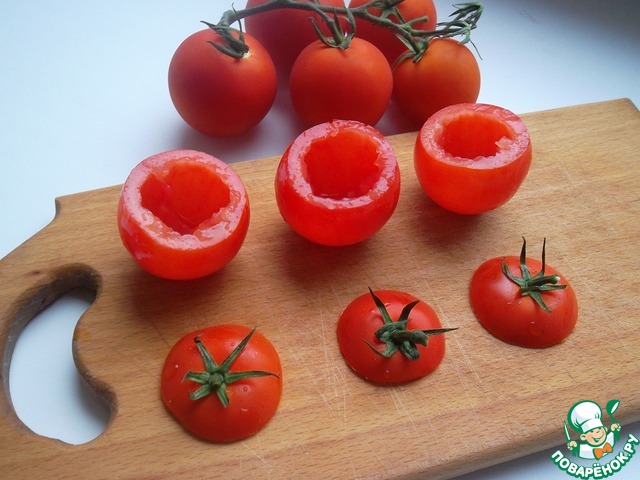 - для извлечения мякоти из помидоров рекомендую использовать заточенную ложку (для такого размера – кофейную) – очень удобно, мякоть удаляется одним круговым движением...