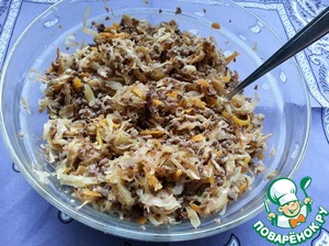 - Капуста квашеная (1/2ч.л. сахара ( мы квасим без сахара и воды).) — 300 г