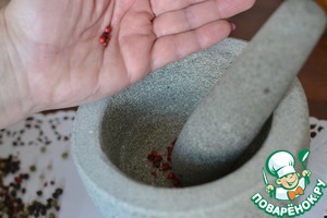 Розовый перец измельчить в ступке