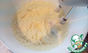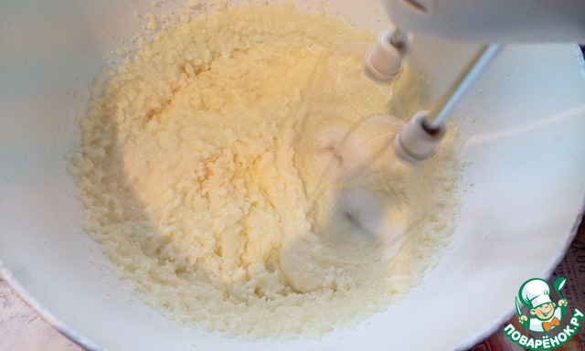 Размягчённое сливочное масло взбить с сахаром до пышной светлой массы.