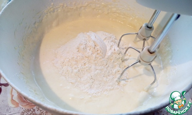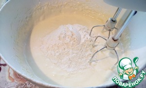 В несколько приемов ввести муку, смешанную с разрыхлителем.