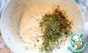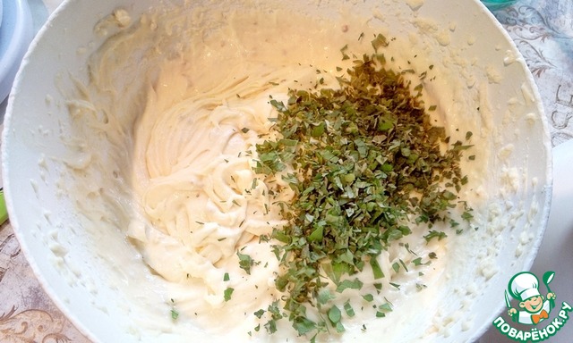 Добавить в тесто мелко нарезанную мяту и тёртую цедру апельсина, перемешать.