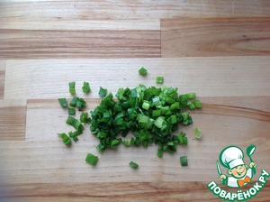 Зеленый лук сполоснуть, обсушить и мелко нарезать.