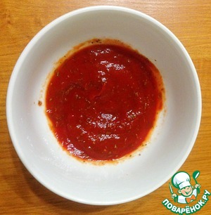 В огреупорные формы (у меня полукруглые) выкладываем чайную ложку соуса, сверху столовую ложку сыра. Повторяем слои два раза.