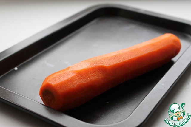Очистить морковь. Вес очищенной моркови составляет 200 г. Для этого рецепта лучше брать сладкую и сочную морковь.