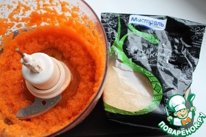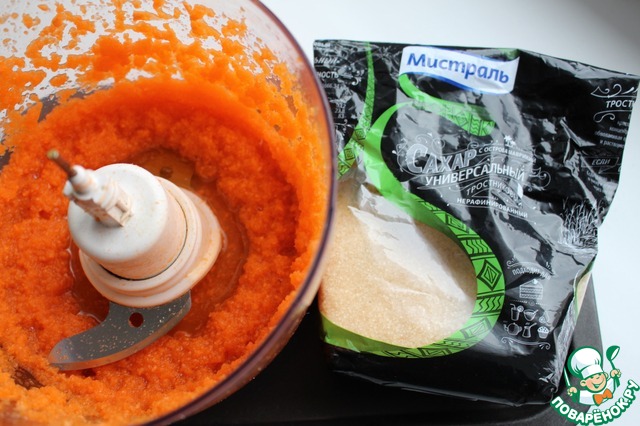 К моркови добавить воду, сахар, цедру апельсина и имбирь. Измельчить до пюреобразного состояния.