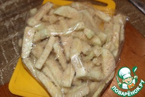 Выложить кабачки в пакет с сухарями. Пакет завязать и энергично потрясти.