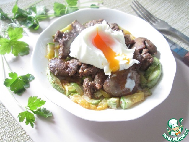 Рецепт «Куриная печень с кабачками и яйцом пашот»: