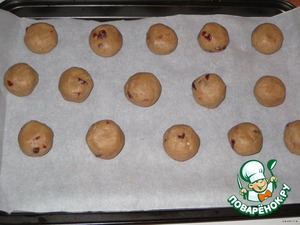 • Из теста сформировать шарики, выложить на противень, размером примерно 2,5-3 см в диаметре