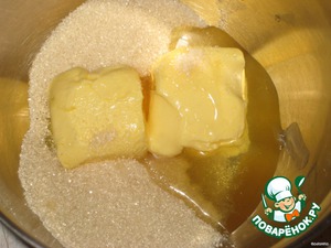 • Мягкий маргарин взбить с сахаром и медом в легкий крем.