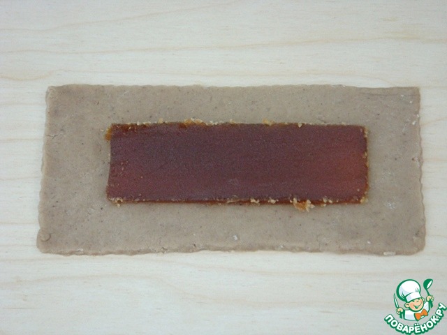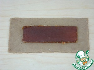 Нарезать пластовой мармелад ломиками толщиной 6 мм и уложить поверх теста.