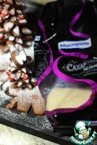 Присыпать сахарной пудрой. При желании можно из ягод рябины сделать "шары" на елки, приклеив их так же глазурью.