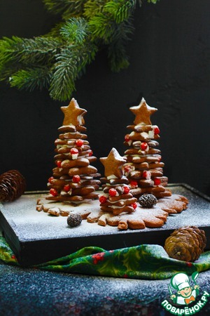 "Кто придумал тот секрет, Точно неизвестно. Может, бабка, может, дед Замесили тесто. Из муки и патоки Выпекали пряники..." Если у вас есть детки - привлекайте их к таинству подготовки к Рождеству и Новому году. Такие пряники делать просто, а смотрятся они эффектно даже для взрослых. Если вы желаете делать именно елочки, то вам понадобятся вырубки для печенья в виде звезд в 5 размерах. Или можно сделать трафарет из картона и вырезать тесто ножом.