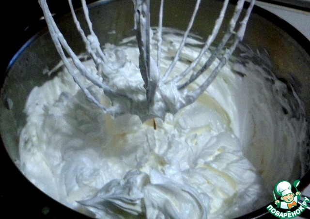 Имея термометр, довести сироп от 116 до 119°C. В это время уже взбились белки до пышной пены, начинаем вливать тоненькой струйкой сироп. Сироп не должен касаться ни венчика, ни стенок чаши. После того как весь сироп вольете, пробейте еще белки минуты полторы-две, добавив ванилин. Крем готов. Им можно пользоваться сразу. Если крем останется и если сделали все правильно, то и на следующий день он не потеряет своих свойств.