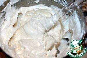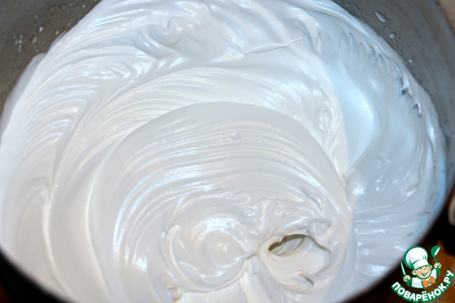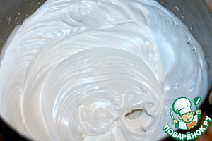 Белки взбить в пышную пену с лимонной кислотой, добавляем потихоньку сахарную пудру, ванилин, разрыхлитель, продолжаем взбивать, пока сахар не растворится.