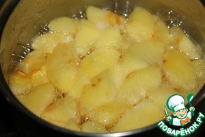 Для заварного яблочного крема яблоки очистить, нарезать ломтиками, перемешать с сахаром и варить, помешивая, до мягкости.