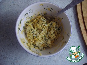 • сыр натереть на крупной тёрке, добавить яйцо и укроп, всё перемешать
