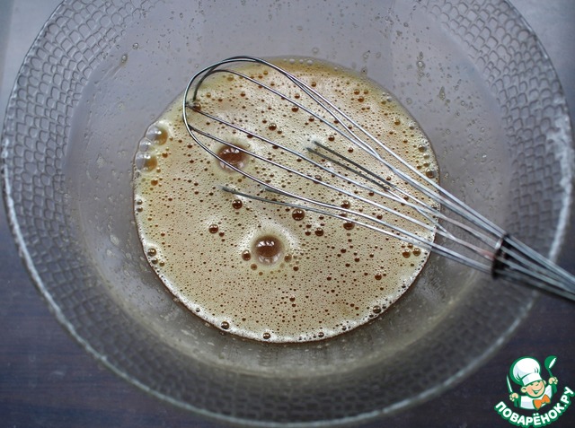 Взбить венчиком яйца, сахар, сметану и мед. Поставить на водяную баню и нагревать, помешивая, до растворения сахара. Добавить соду и снять с плиты. Если у вас сахар мелкий и хорошо растворяется, то можно просто тщательно и подольше перемешивать все ингредиенты, без использования водяной бани. Я готовила обоими способами и разницы не заметила.