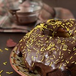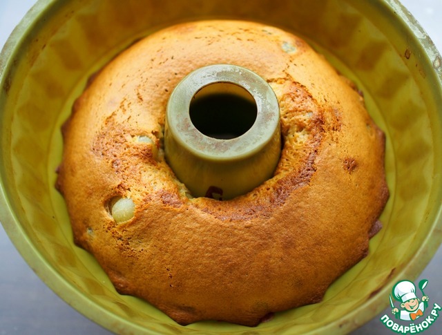 Выложить тесто в форму для выпечки кекса. Выпекать 30-35 минут в разогретой духовке. Готовый кекс остудить, достать из формы. Покрыть шоколадной или любой другой глазурью.