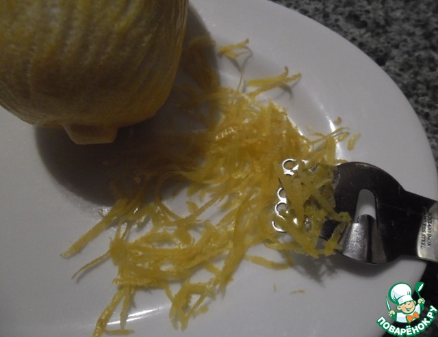 С одного большого лимона натрём цедру, выдавить 2 ч. л. сока. Прежде, чем выдавливать сок - покатайте его с нажимом по столу.
