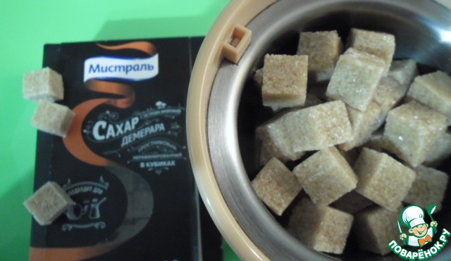 - Сахар коричневый (из 30 кубиков тростникового сахара ТМ МИСТРАЛЬ у меня получилось 150 г пудры) — 150 г