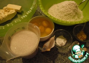 Остальные необходимые нам продукты должны быть комнатной температуры, муку просеять, ванилин смешать с сахаром, цедры получилось десертная ложка с горкой.