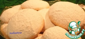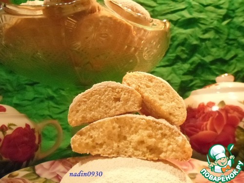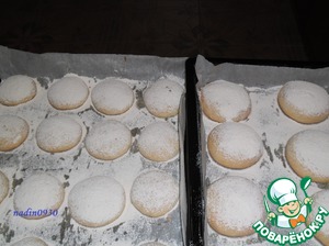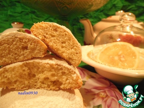 Посыпаем сахарной пудрой. При остывании изделий, из сока с пудрой получится тонкая нежная корочка, а сверху пушистая пудра.