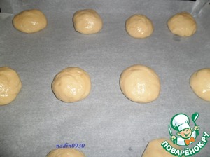 Теперь из него можно формовать шарики. Столовой ложкой набираем массу и, смочив руки холодной водой, БЫСТРО скатываем шарики. Тесто лёгкое, очень хорошо формируется, главное-быстро и слегка скатать. Плотно не укладывайте в форму, т. к. шарики увеличиваются. Я делала шарики трех размеров. В один противень столовой ложкой, в другой десертной, в третий чайной. Таким образом получились прянички разных размеров, на любителя.