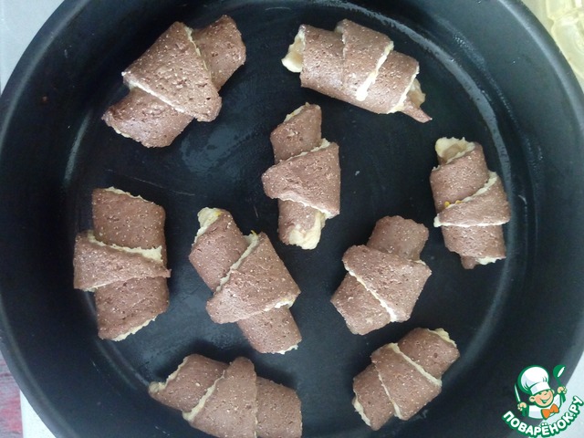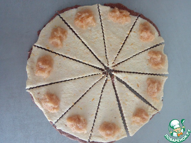 Заворачиваем рогалики. Выкладываем на противень. Выпекаем при 190° в духовке 15-20 минут.