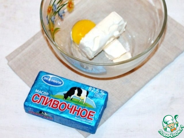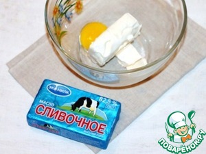 1. Отделить белок от желтка. Взбить миксером сливочное масло с желтком и солью.